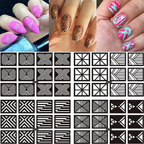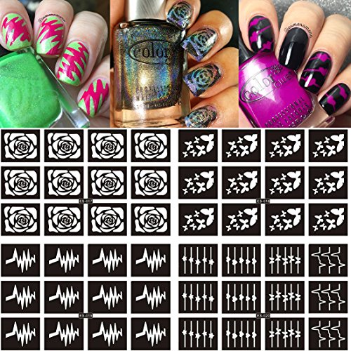 Ejiubas 144 Pieces 24 Different Designs Nail Vinyls Nail Stencil Sheets Easy Nail Art Nail Guides Nail Stickers Set 12 Sheets