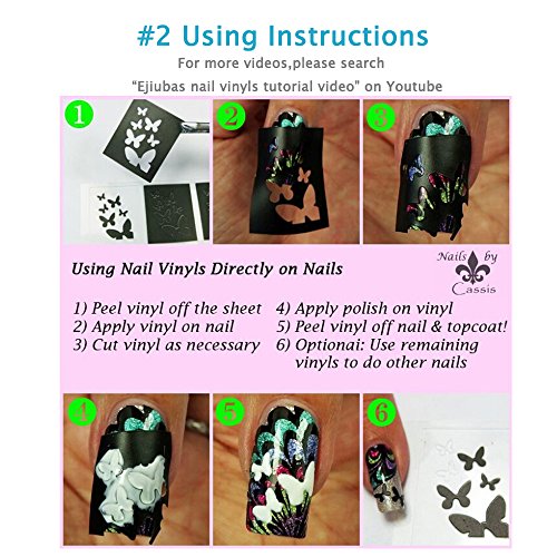 You will receive 8 sheets 15 different designs nail vinyls at an Incredible Price, No dry time, drive time or wait time. Just peel, press, apply and go. Get gorgeous, like salon nails in seconds