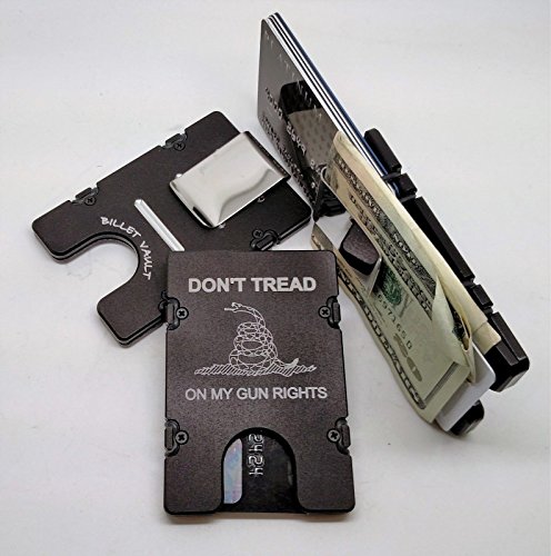 Binding : Apparel Product Description The badass BilletVault Aluminum Wallet has been minimally machined from two pieces of solid billet aluminum. Aluminum is anodized with design laser engraved. Carry only what you need, with its size easily adjusting from your daily ID and bank card, to up to twelve cards for traveling or networking events. With a money clip included for carrying your currency, and 4 extra O-rings, it's a convenient carryall no matter what you want with you. The lightweight 81 gram construction of this wallet lends itself to utter comfort. The slim front pocket profile helps alleviate lower back pain, while the tough construction also keeps your information secure by blocking RFID devices used to wirelessly steal your identity or credit card information. You're sure to be safe as well as stylish with the beautiful BilletVault Aluminum Wallet. Product dimensions are 2 3/8 x 3 1/2 x 1/4 completely empty. This wallet will never wear out. 0