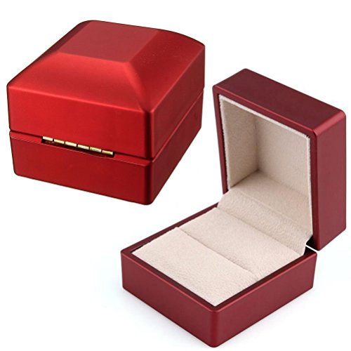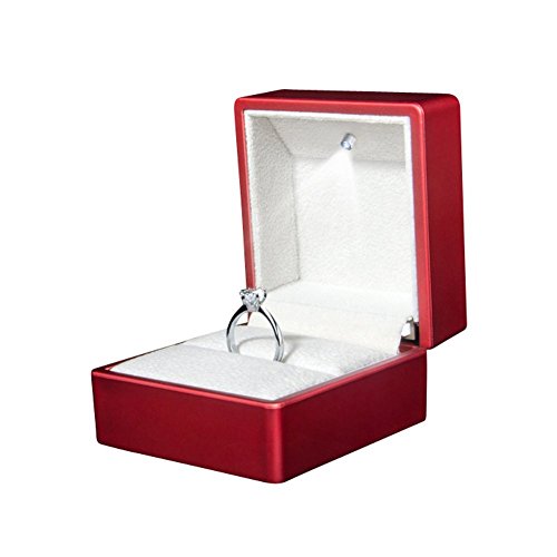 Luxury Solid Cherry Polish Single Engagement Ring Jewelry Box with LED Light (White)