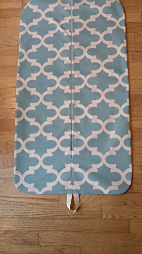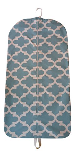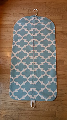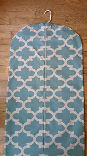 -. Brand : Carry It Well -. Color : Light Aqua -. Department : womens -. Feature : Hanging garment bag, perfect for traveling in style / Width: 22 inches, Length 43 inches / 100% Cotton Fabric, Grosgrain Ribbon. Handmade in USA / Comfortably holds 3-5 garments, zips up the front with a grosgrain loop at bottom / Cold water wash and hang to dry. Great for travel or storage. -. Model : Light Aqua and Cream -. PackageQuantity : 1 -. ProductGroup : Apparel -. ProductTypeName : LAGE -. Size : 22"x43" -. Title : Carry It Well Women's Hanging Garment Bag Light Aqua and Cream Moroccan Gate