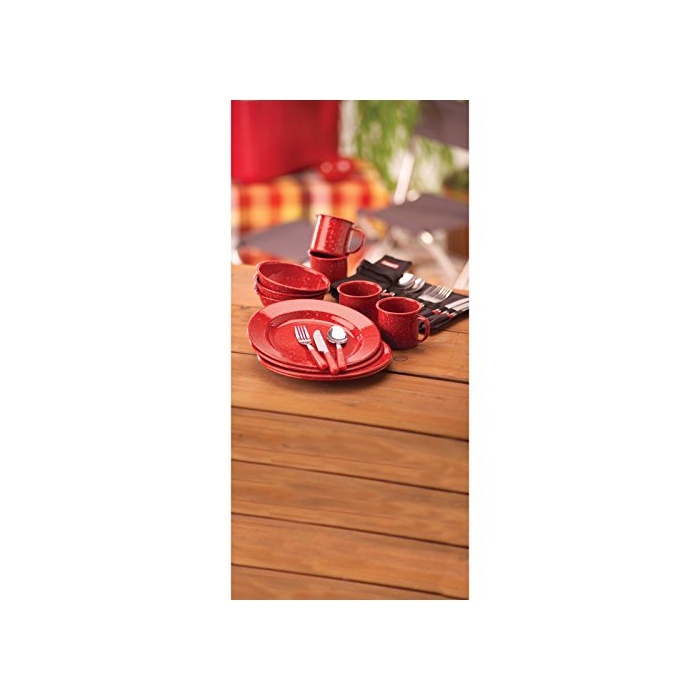 Coleman Speckled Enamelware 테이블 웨어 세트 Dining Kit (Red)