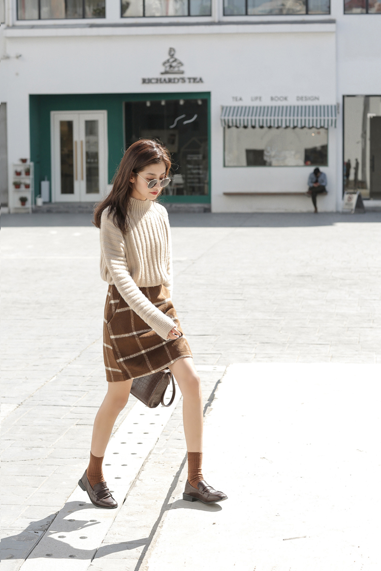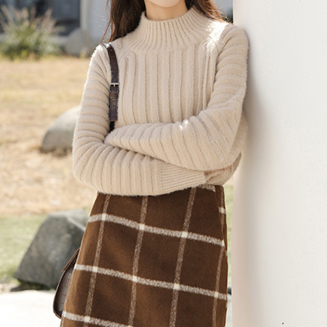 程よくゆったりしたデザインなので体型カバーをしながら、リブ編みなのでスラっとした印象に仕上がります。