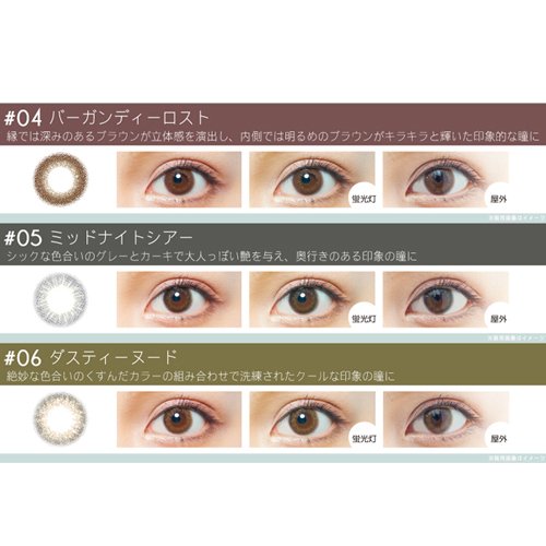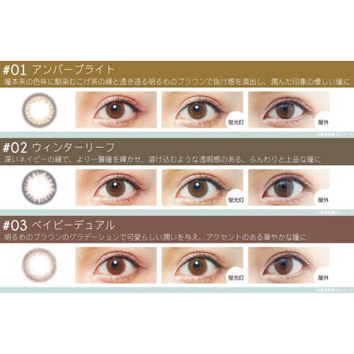 In the rim, a deep brown directs a stereoscopic effect, and on the inside it is an impressive eyes shining brighter brown with glitter.