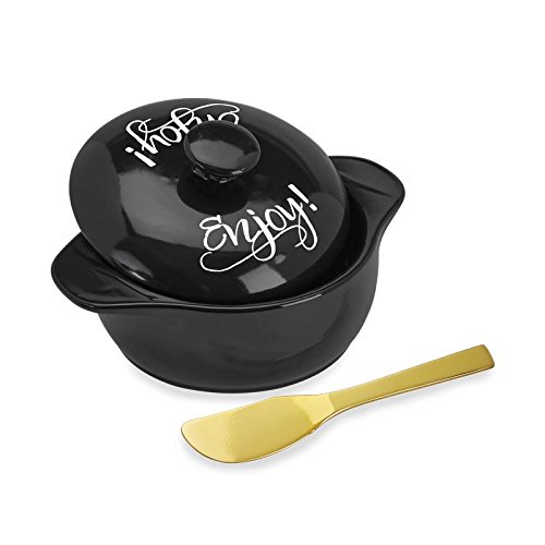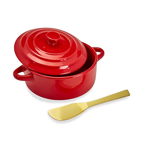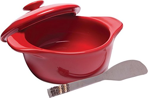 Indulge your inner cheese lover with our new ceramic Brie bakers. In bold red this baker makes your table settings stand out and is great for the holidays! Comes with stylish gold spreader for serving. This durable brie baker design is oven, microwave, and dishwasher safe.Feature