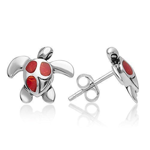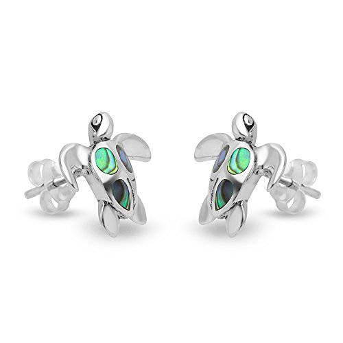 -. Title : 925 Sterling Silver Beautiful Inlay Sea Turtle Post Stud Earrings 12 mm Women Jewelry