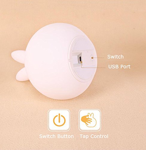 Rabbit Nursery Lamp, Tap Control and Silicone Touch Nursery Lamp, USB Rechargeable Kids Night Light for Girl Lady Children Baby Bedroom