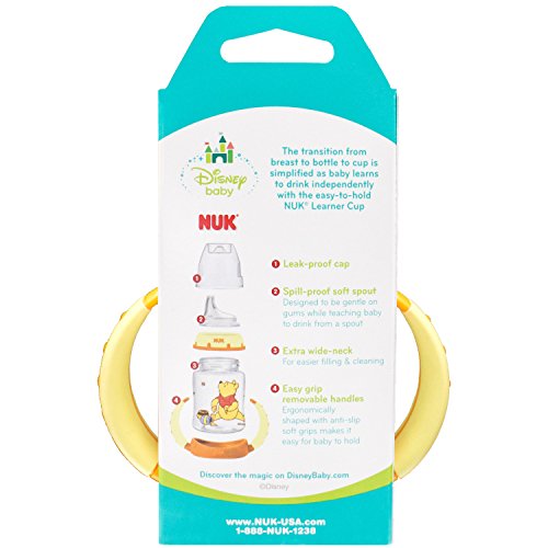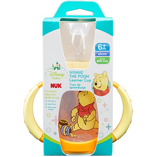 -. Binding : Baby Product -. Brand : Disney -. Feature : Disney winnie the pooh learner cup comes with a silicone spout / Spill proof / Easy grip handles are ergonomically shaped with anti-slip soft grips make it easy for baby to hold / Extra wide neck for easier filling and cleaning / BPA free -. Label : Disney -. Manufacturer : Disney -. ProductGroup : Baby Product -. ProductTypeName : BABY_PRODUCT -. Publisher : Disney -. Studio : Disney -. Title : NUK Disney Winnie the Pooh 5 Ounces Learner Cup Silicone Spout, 6+ Months