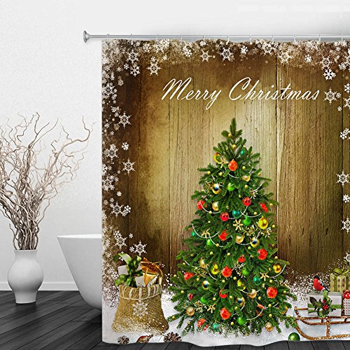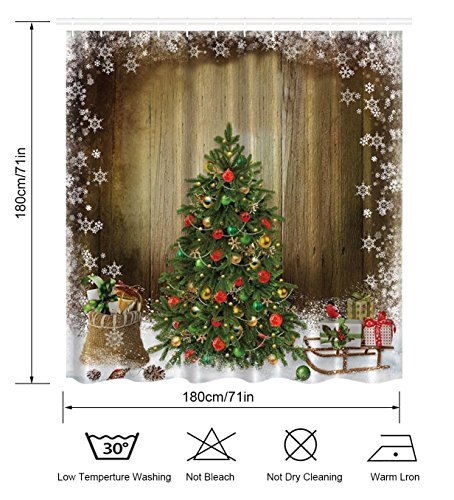 Material : 100% polyester , This christmas tree shower curtain has a good waterproof and anti-mildew function