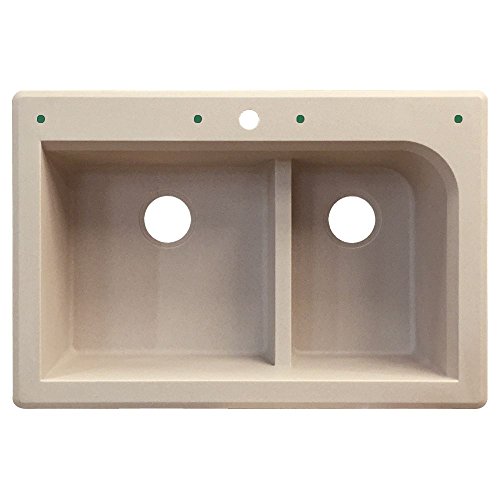 Transolid RTDJ3322-16 Radius 33-in x 22-in x 9.5-in Granite 1-3/4 J-Shaped Double Drop-in Kitchen Sink with 1 Pre-Drilled Faucet Hole, Cafe Latte