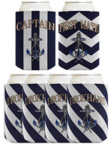 Funny Can Coolie Sailing Captain First Mate Deckhand Bundle Boating Gift 6 Pack Can Coolie Drink Coolers Coolies Navy Stripes