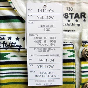 品質:本体/綿100% 附属/綿95% ポリウレタン5%