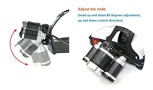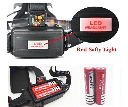 Brightest LED Headlamp 4 working Modes with two 18650 Rechargeable Batteries, WaterProof and Ideal Headlight Flashlight for Outdoor sports like Camping Fishing Hiking Riding