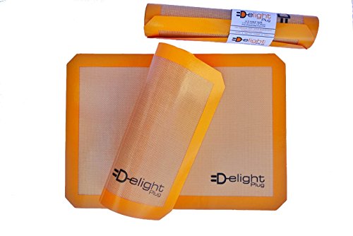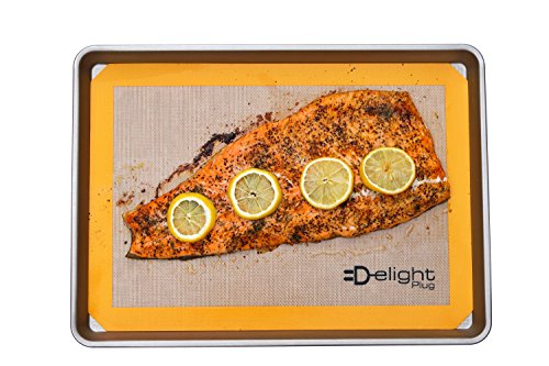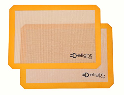 PERFECT SOLUTION TO BE DELIGHTED / LARGE (2-PACK): Turn ANY US standard half size pans or baking sheets into a non-stick surface by using our Delight Plug baking mats (16.5" x 11.6”). Use our baking mats for any baking recipe (sweet or savory) that calls for parchment paper; Delight Plug baking mats replaces the need for butter, grease, oils, and sprays.