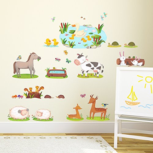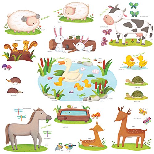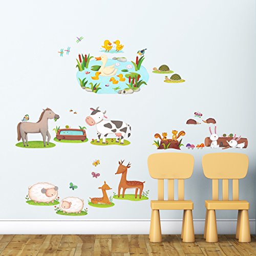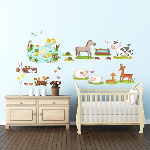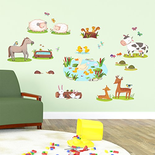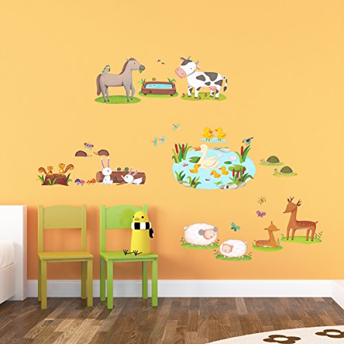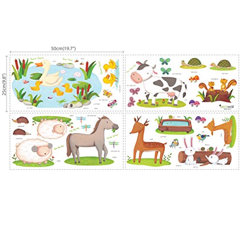 Decowall DW-1403 Field of Animals Kids Wall Decals Wall Stickers Peel and Stick Removable Wall Stickers for Kids Nursery Bedroom Living Room