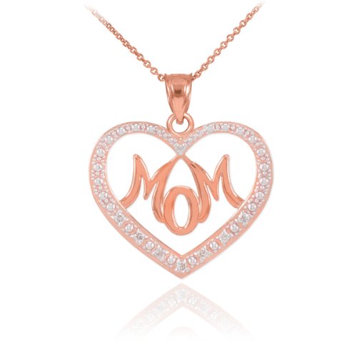 -. Binding : Jewelry -. Brand : Mother's Jewelry -. Department : womens -. Feature : modern love-inspired mother / mommy pendant necklace adorned with 7 stunning natural white diamond accents / finely crafted with solid 14 karat rose gold (pink gold) in perfect polished finish / comes with free special gift packaging / made in the USA yet offered at factory direct jewelry P.R.Ice / ships within 24 hours from the manufacturer directly to the customers -. Label : Claddagh Gold -. Manufacturer : Claddagh Gold -. Model : CM817RG -. MPN : CM817RG -. PartNumber : CM817RG -. ProductGroup : Jewelry -. ProductTypeName : FINENECKLACEBRACELETANKLET -. Publisher : Claddagh Gold -. Studio : Claddagh Gold -. Title : 14k Rose Gold Diamond Love Script Mom Charm Open Heart Pendant Necklace