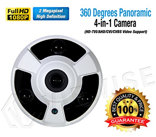 VIEWISE 1080P 2 Megapixel Indoor / Outdoor Surveillance Security Camera Video Monitoring Night Vision 4-in-1 HD-TVI, AHD, CVI, CVBS Camera (White Indoor Dome 360 Degree Fish-eye Lens)