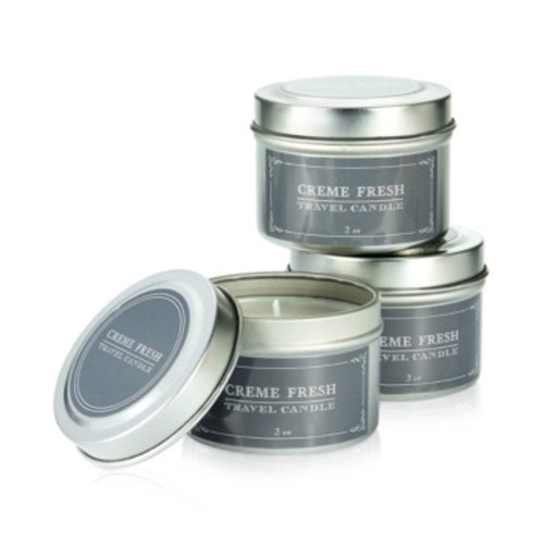 - Studio Hall Creme Fresh 3 Piece Travel Tin Candle Set A wonderful and soothing fragrance blend of vanilla and farm--fresh cream, with a touch of coconut is sure to be a year--round favorite. Includes three 2 oz tin candles.