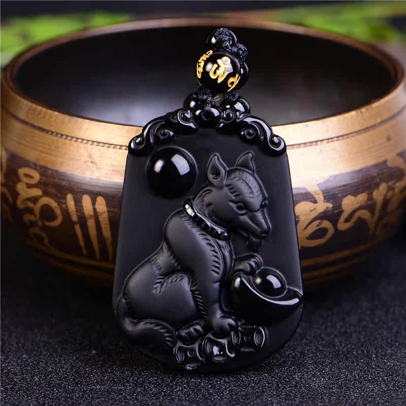 黑曜石十二12生肖狗吊坠男女款 本命年吊坠护身符 财福