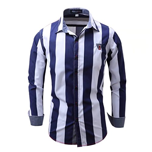 -. Title : BJHG ORIGINALS Men's Stripe Button Down Shirt Cardigan Casual Long Sleeve Cotton Work Shirts Dress Shirt with Embroidery