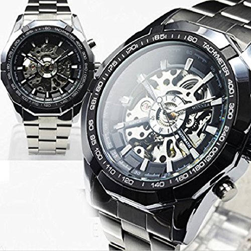 -. Title : 【3Dフルスケルトン/選べる2色】機械式 メンズ 腕時計 自動巻 ビッグフェイス スチームパンク 夜光 アンティーク レトロ