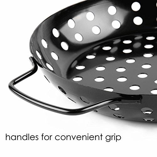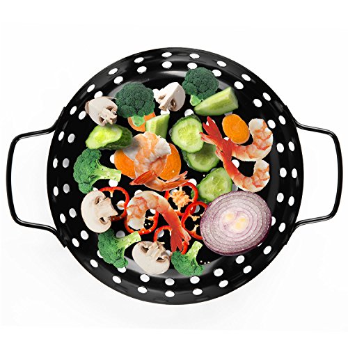 - Non-stick coating avoids discolor-issue like stainless steel; Use the light grill wok while camping, grilling outdoors, fitting most grills