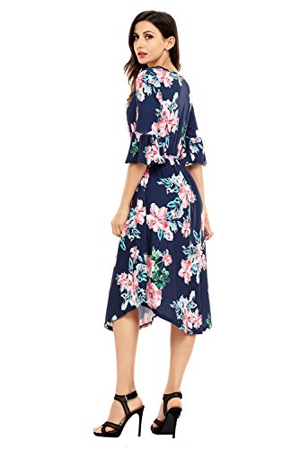 Annflat Women's Summer Floral Print Bell Sleeve Casual Midi Dress S-XXLGorgeous feminine flower print.Round neckline with 3/4 length bell sleeves. Fitted at the bust with a loose skirt for the perfect flattering and comfortable fit. Round bottom hem. Soft flowy stretch fabric. And the best part - this dress comes with side pockets! Mid-length hits at mid calf. You'll get compliments every where you go in this gorgeous dress.