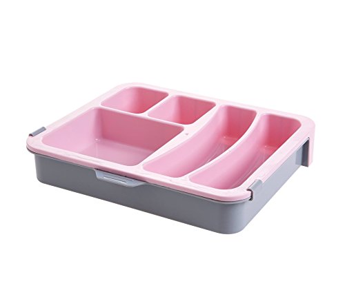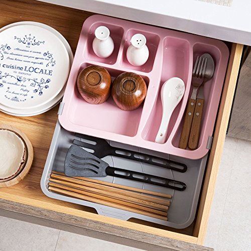 Astra Gourmet Expandable Flatware Drawer Organizer/Plastic Cutlery Tray/Kitchen Utensil Drawer Organizer/Storage Container Holder, Pink