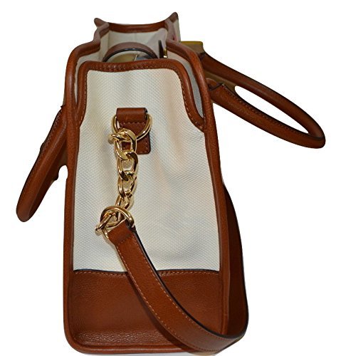 -. Feature : Interior features zip pocket, 2 slip pockets / Double top handles with 7-1/2" drop; shoulder strap with 14- 1/2" drop / Magnetic closure / 14"W x 11"H x 5-1/2"D / Canvas; Trim: leather