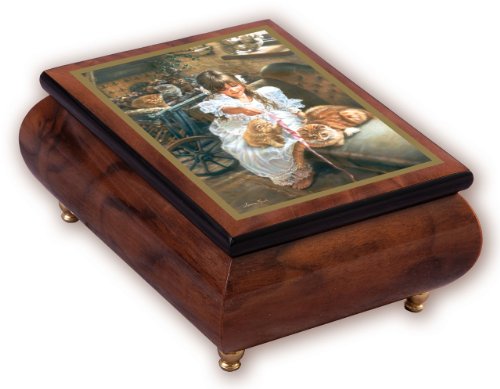 Ercolano "Playful Kittens" 18 Note tune Wooden Box with Image, 6 by 4.25 by 2.75-Inch, Walnut Glossy Finish