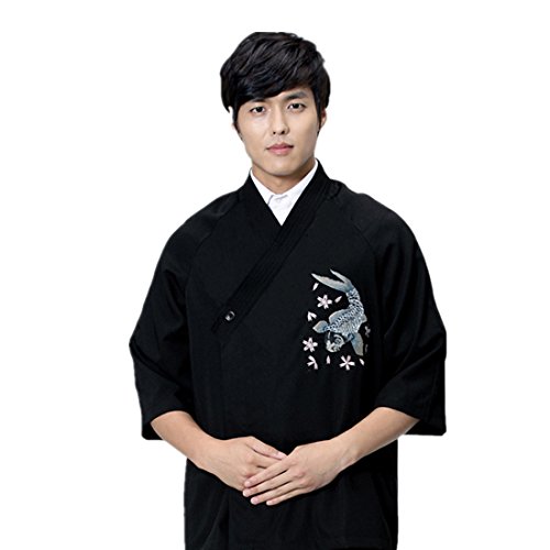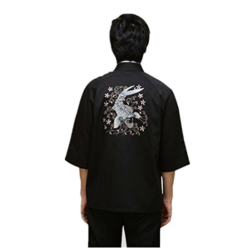 Mens Japanese black sushi chef coat with embroidery pattern for restaurant
