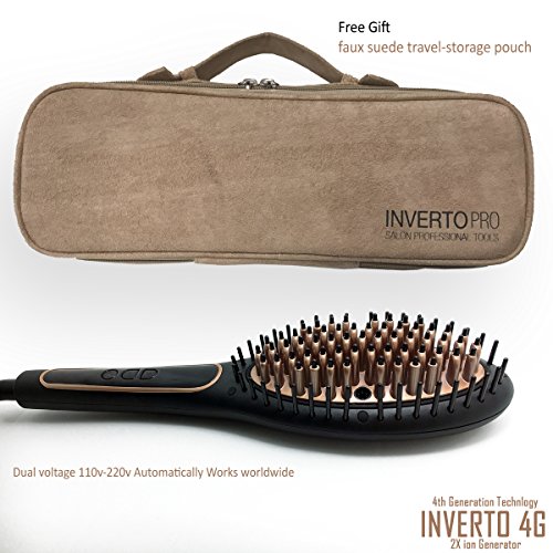 Studio : KERATIN RESEARCH Publisher : KERATIN RESEARCH Binding : Misc. Product Description Inverto Pro 4G Straightening Copper Ceramic Brush 4th Generation with true 2X ionic generators Adjustable Temperature, quick hair smoothing, Ergonomic design Dual Voltage for Worldwide travel portable Inverto Pro 4G Copper Ceramic hair straightener brush gives quick professional results of silky straight hair in minutes. It allows you to get ready quickly, instead of wrestling with the blow dryers day after day. Inverto Pro 4G is equipped with Dual ion Generators to remove frizz and static while brushing your hair it speeds up the process , saves time and lasts longer. Use Keratin Research Miracle Serum to help the hair stay smooth until your next wash, even if sweat or get wet High temperature resistance materials Fast heating and constant temperature retention 3 in 1 DESIGN: Ceramic Iron Straightener Detangling Brush Dual ion Generators, Perfect combination to create hairstyles of unrivaled beauty effortlessly in a few minutes! CONTROLLABLE TEMPERATURES: Hair straightener brush temperature will be displayed on the LCD screen. The adjustable heat temperatures allow you to match your specific hair type 0