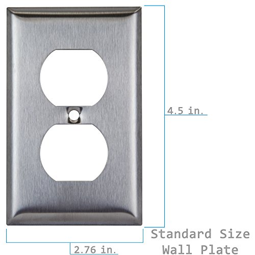 Specifications: Universal design allows easy retrofitting to any duplex wall opening. Duplex stainless steel wall plate measures 2.76" Length x 4.50" Height x .25" Thick.