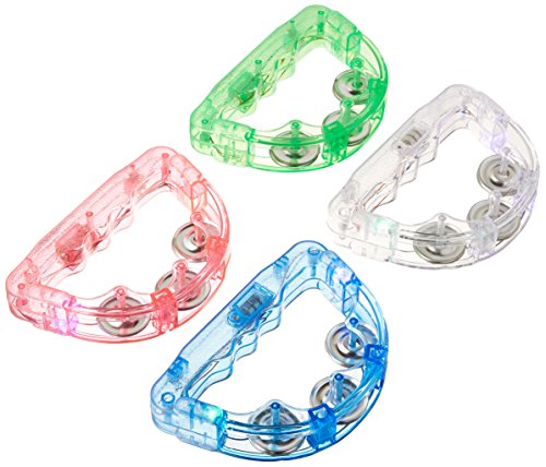 Set of 12 Flashing Light Tambourine Children's Kid's Novelty Toy Noise Maker w/ 3 Light Patterns, Perfect for Party Favors, Goodie Bags (Colors May Vary)