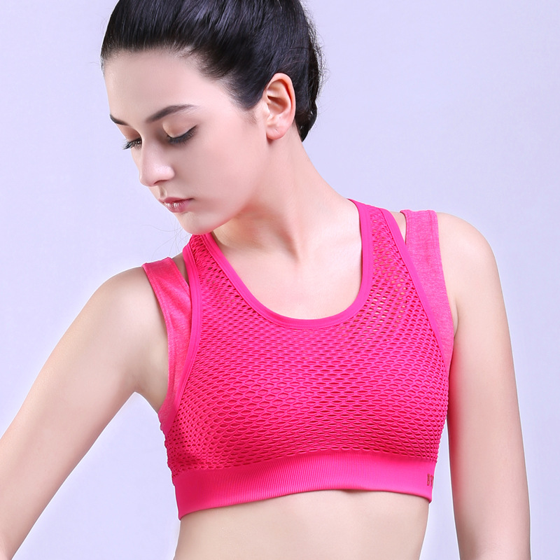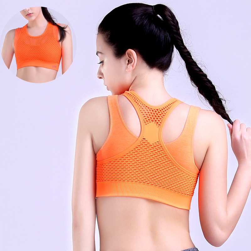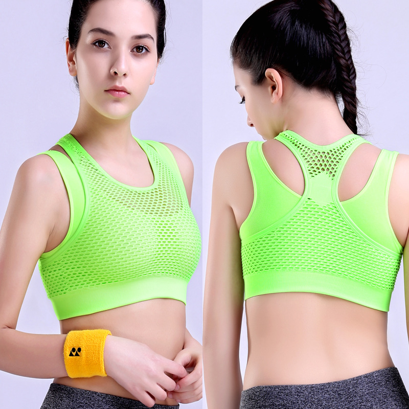Fitness Women Sports Sexy Bra Mesh Padded Push Up Underwear Gym Running Wirefree Training Vest Breathable Yoga Shockproof Tops