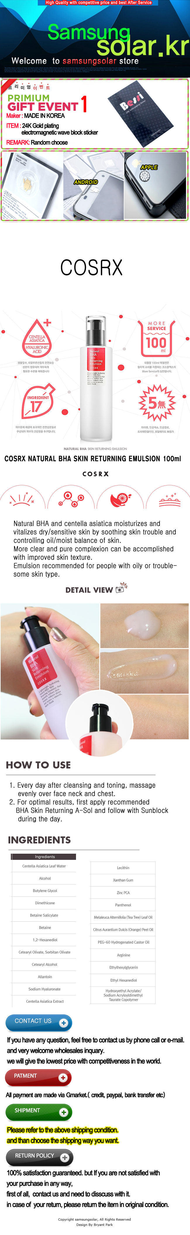 Natural BHA Skin Returning lotion is a skin-type solution product that solves the daunting problem of complex skin trouble with a combination of Propolis, natural BHA, and natural moisture-retention ingredients, as well as helping with control of sebum and clearing of dead skin cell.