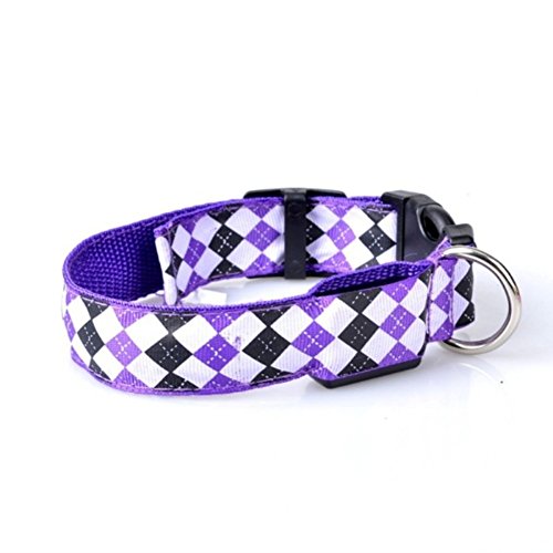 Material:Color: Red. Orange.Blue.White.Green.Purple.Yellow.Pink. Battery: 2 * CR2016 button batteries (pre-installed) Style: Rhombus Pattern LED Collar Package Weight:65g(Approx) Battery: 2PCS CR2032 button battery-powered Modes: Quick flash-slow flash-still on Easy to use: simply pushing the control button makes the light ON/FLASH/OFF. size----------Length-----------Width S-----35-43cm/13.7-16.9"------2.5cm/0.98" M----40-48cm/15.7-18.8"-------2.5cm/0.98" L---45-52cm/17.7-20.4"---------2.5cm/0.98" XL---52-60cm/20.4-23.6"--------2.5cm/0.98" Item Includes:1 x Dog LED collar 0