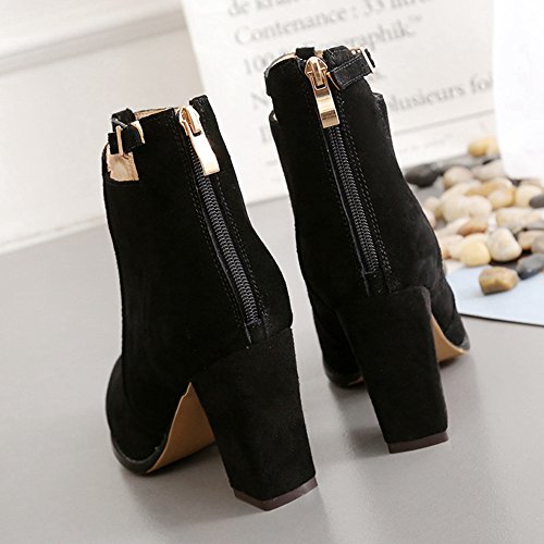Product DescriptionBtrada Winter Zip High Thick Heel Ankle Boots for Womens Sexy Pointy Toe decor Ankle Buckle Bootie Shoes0