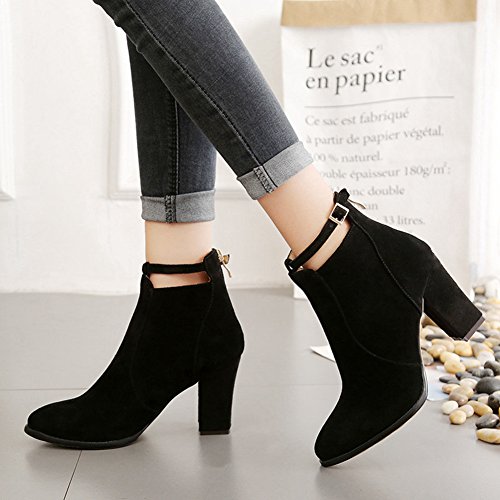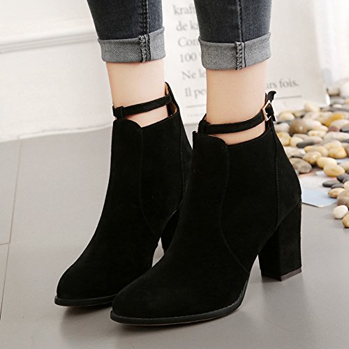 (Btrada)/Women's/Boots/DIRECT FROM USA/Btrada Winter Zip High Thick Heel Ankle Boots for Womens Sexy Pointy Toe decor Ankle Buckle Boo...