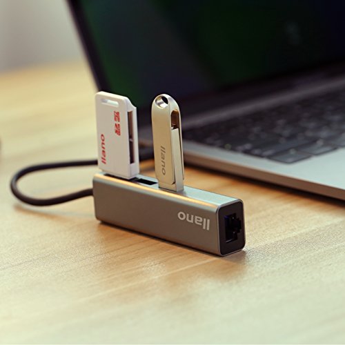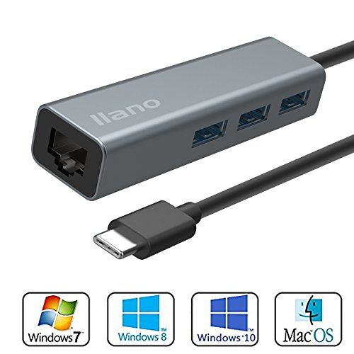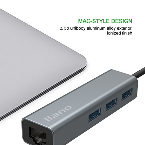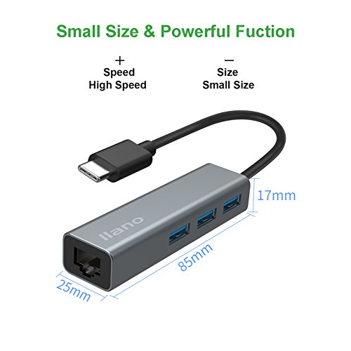 llano USB C 3-Port Portable Hub with Ethernet Port,Support USB 3.0,Network Adapter for New Macbook,Desktop PCs and More,Multi-port Ethernet Adapter, USB C Ethernet Dongle,Aluminum Alloy (Type-C Gray)