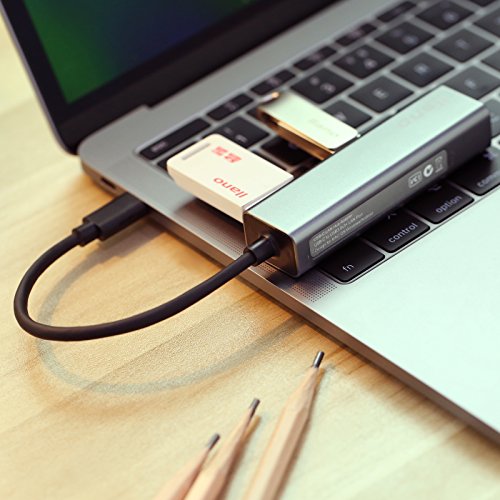 - 4-in-1 USB C Adapter: 3*USB 3.0 Port - Super speed up to 5.0Gbps data sync; 1*RJ45 - Gigabit ethernet port provides access to superfast network speeds, the compact design and powerful functions will free you from a multitude of electronic accessories.