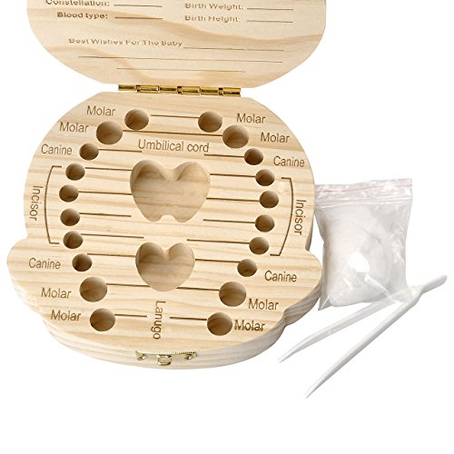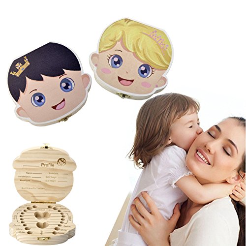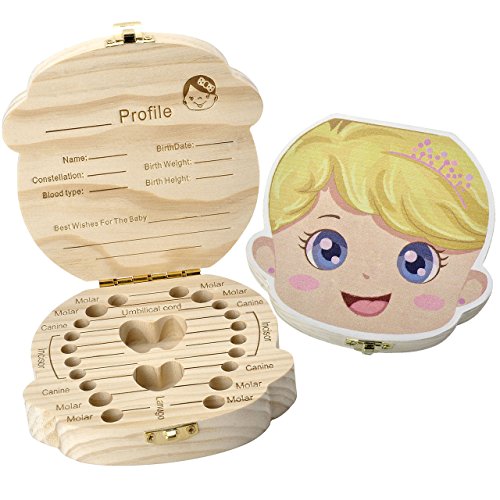 CozyCabin Baby Teeth Box,Child Milk Teeth Saver Wood Keepsake Organizer Deciduous Souvenir Box Baby Tooth Box (English, Princess)