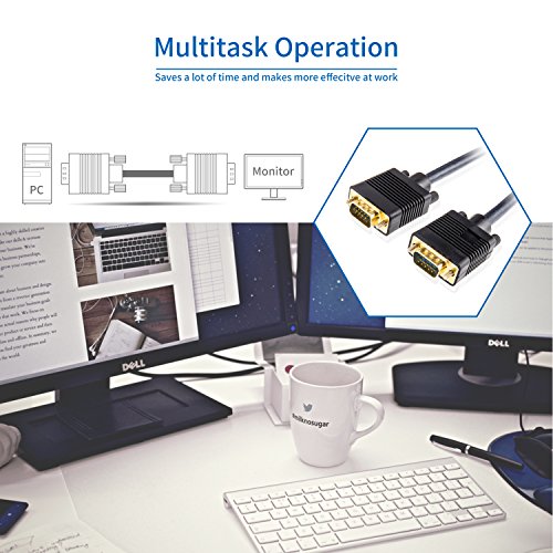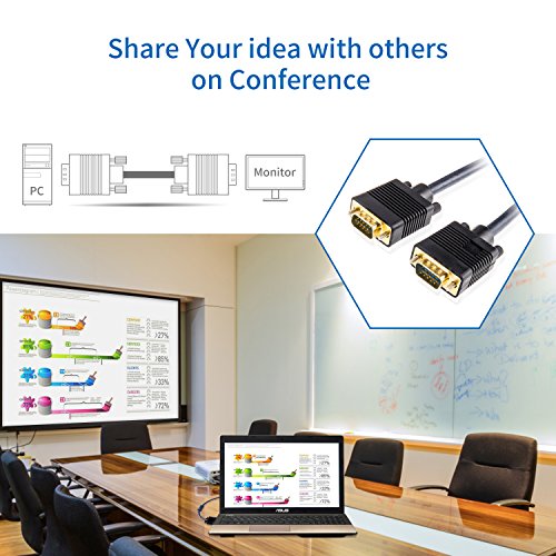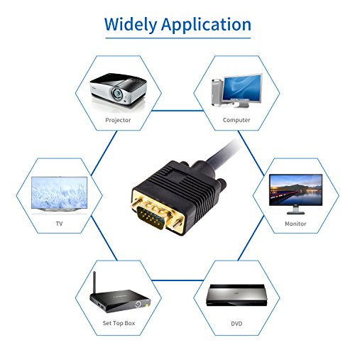 Projector Cable VGA/SVGA HD15 Male to Male Video Coaxial Monitor Cable with Ferrite Cores Gold Plated Compatible for Projectors, HDTVs, Displays, 15ft/5m