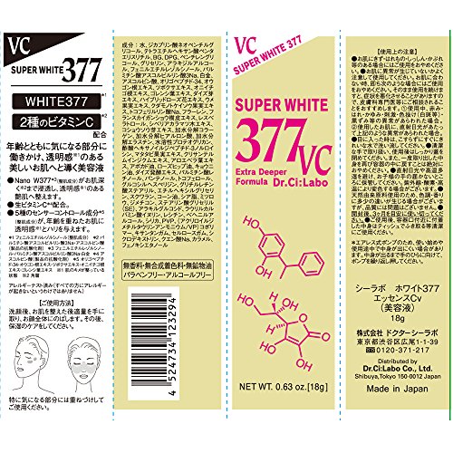 Dr. Ci:Labo Super White 377 VC Extra Deeper Formula has the following features:Japan's leading fast-acting whitening ingredient: White 377 x.Permeable vitamin C derivative targets stubborn black spots and minimizes pores.Use three-phase ingredients that fight yellowness, sagginess and wrinkles to create young and radiant skin.For skin with large pores and dark pigments.