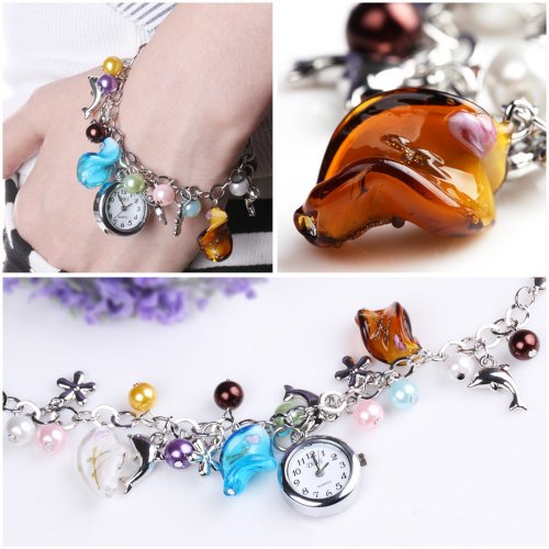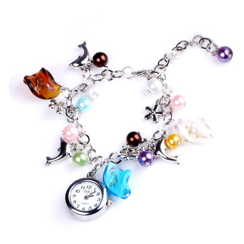 -. Title : ALIENWOLF Fashion Dolphin Beads Ladies Girl Women BANGLE BRACELET Quartz Watch
