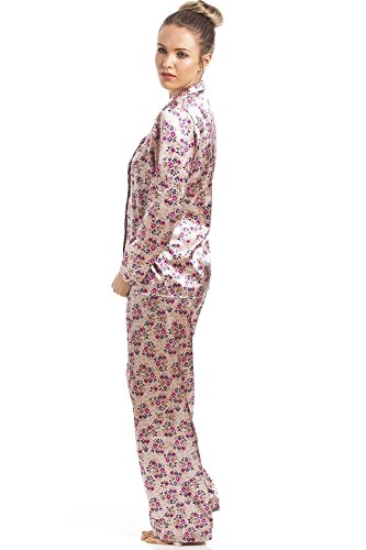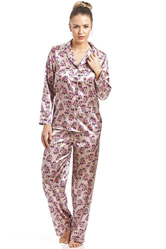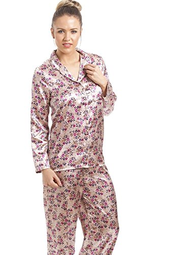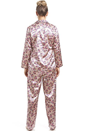 -. Title : Camille - Damen Schlafanzug aus Satin mit Blumenmuster - rosa
