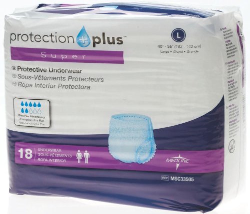 ReleaseDate : 2015-06-09 Studio : Medline Industries Publisher : Medline Industries Binding : Health and Beauty Product Description Disposable Protection Plus Super Protecitve Underwear features a pull-up design that gives patients the comfort and feel of underwear. Anti-leak guards provide for maximum containment. Ultra-absorbent core helps keep moisture away from the skin and controls odor. The breathable outer cover adds to the comfort and provides better skin health. 0