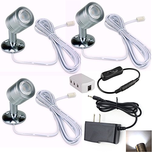 Xking 12V 1W LED Spotlight / Cabinet Light / Jewelry Lamp / Ceiling Light / Display Cabinet Light /museum/Wall Light - White 6000K (Set of 3)