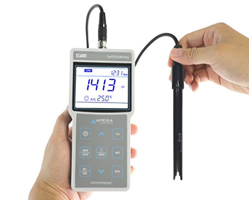 Apera Instruments AI422 EC400S Portable EC (Conductivity)/TDS/Salinity/Resistivity) Meter Kit, GLP Data Management (500 Groups of Data Storage), USB Data Output, 1.3" Height, 3.4" Wide, 7" Length