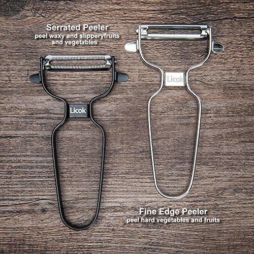 Peel and Slice Faster, Save More Time for Cooking Made of fine German materials, the blade of this handheld kitchen vegetable peeler is super sharp and will allow you to handle even thetoughest vegetable skins Beautiful Mirror Effect With its mirror satin finish, this full stainless steel apple peeler looks beautiful and will delight you when you hold it in your hand. The smooth finish also makes it easy to clean, Just place this y peeler under running water and then give it some shake. 2 Potato Eye Removers for Faster Imperfection Removal This sweet potato peeler has potato eye remover on both side of the blade, allow you to quickly remove imperfections from potatoes or other types of vegetables while you are peeling them Ergonomic Handle to Enhance Grip and Reduce Hand Fatigue Finger-wide openings on the upper part of the handle to provide you with easier grip so that you can hold the apple peeler for long time without discomfort Non-slip, so that you will peel vegetables in different ways you wish Dishwasher Safe This apple hand peeler is 100% dishwasher safe, means you can throw it into the washer and forget about itevery time you finish peeling 0 |